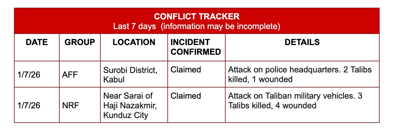 Fighting at Takhar Goldmine – On Monday, deadly clashes erupted in Chah Ab district of Takhar province between local residents and armed personnel of Taliban-affiliated mining companies operating the Samti gold mine. The violence followed protests over alleged environmental damage and unregulated mining practices. Protesters reportedly attacked the site, prompting guards to open fire. At least four people—three residents and one Talib serving as a guard—were killed, and 16 others were injured. Protesters also burned vehicles, seized company property, and briefly detained several guards. Chinese workers were evacuated to the provincial capital. Local discontent has grown since the Taliban awarded the gold mine to a Chinese firm in 2024, with residents accusing the companies of resource looting and damage to farmland and water supplies. The Taliban Ministry of Mines said it has dispatched a delegation to investigate. Several individuals suspected of involvement in the protests were detained on Wednesday, with additional arrests continuing through the weekend.