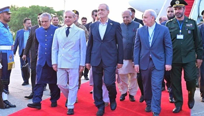 The Iranian president — who was welcomed in Lahore by former prime minister Nawaz Sharif and Punjab Chief Minister Maryam Nawaz — is accompanied by a high-level delegation, including senior ministers and other high-ranking officials.